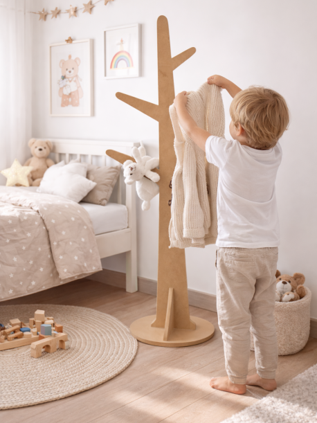 Organize o quarto do seu filho com estilo e autonomia! Com 1,20m de altura, este cabide é perfeito para que as crianças alcancem facilmente os seus casacos, mochilas e acessórios.