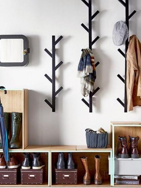 A peça fica afastada da parede cerca de 8/10 cm para conseguirem pendurar as peças.