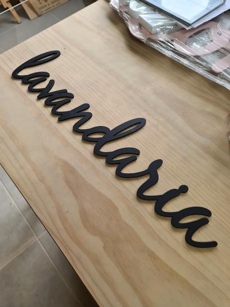 A palavra é feita em Madeira MDF Preto de 3 mm de Espessura
