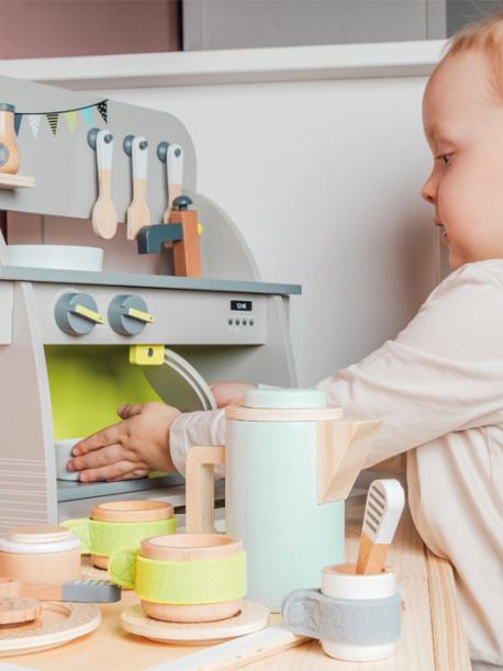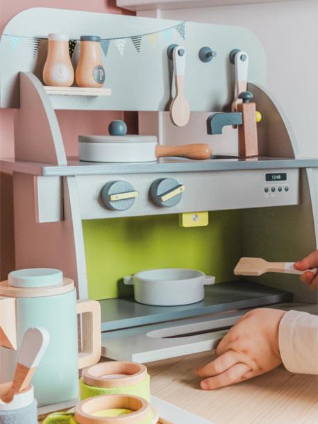 inclui: 1 cozinha infantil, 1 pimenta, 1 sal, 1 panela, 1 tacho, 1 tampa de panela, 1 colher, 1 garfo, 1 espátula