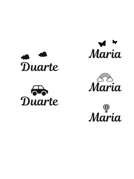 As peças vem soltas, ou sejam o "Nome" será uma peça inteira e os acessórios outras peças, dessa forma conseguem colocar e distribuir da forma que desejar