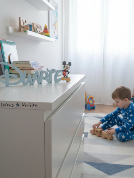 Apresentamos a nossa coleção exclusiva de nomes personalizados em madeira. Cada peça é criada para refletir a individualidade e os sonhos dos mais pequenos, tornando o seu espaço ainda mais especial. Perfeito para comoda, prateleira ou secretária, este detalhe vai arrancar sorrisos todos os dias!