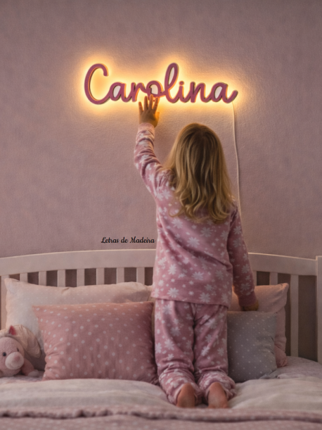Cada nome é cuidadosamente produzido e iluminado para destacar a decoração da parede, tornando-se o elemento principal do quarto infantil. Ideal para quartos de bebé, quartos de criança ou até como presente especial.