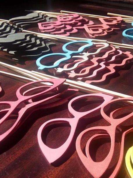 As peças de Fotobooth são feitas em Madeira MDF de 3 mm de espessura com pintura a gosto