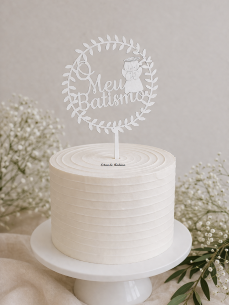 Com um design delicado e cheio de significado, é o complemento perfeito para um bolo de batizado, criando uma decoração elegante e intemporal.
